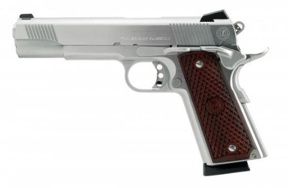 Government II Features The top-selling 100% mil-spec American Classic II is one of the best 1911 values on the market and includes many add-ons usually found in custom pistols. Choose your finish – duotone, hard chrome or blue – and get shooting Government II Specifications Model: American Classic Government II Type: Semi-auto Pistol Action: Single Action Caliber/gauge: 10mm Finish: Hard Chrome Finish Type: Applied Finish Frame: Steel Frame Stock/grips: Custom Hardwood With Mac Logo Grip Type: Wood Barrel: 5″ Overall Length: 8.375″ Capacity: 8 + 1 Sights: Dovetail Front / Novak Rear Sight Type: Fixed Sights Weight: 37.28 Ox Safety Features: Extended Thumb Safety Addl Info: Front & Rear Slide Serrations Addl Info: Skeletal Combat Trigger Addl Info: Tuned Trigger