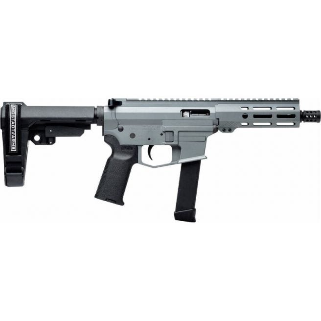 Angstadt Arms UDP-9 AR Pistol 9mm Luger 6″ Barrel 17 Rounds Uses GLOCK Style Magazines Features: The Angstadt Arms UDP-9 Pistol is a closed bolt, blowback operated 9mm Luger AR style pistol that is perfect for home or personal defense. It starts with billet 7075 T6 aluminum receivers that are precision machined to exacting detail. The slick side flat top upper and Angstadt Arms M-LOK Freefloat Handguard provides a full length picatinny top rail making this pistol optics ready out of the box. The lower receiver features a flared magwell for fast mag changes and an integral oversized trigger guard for easy operation. Using a standard AR-15 fire control group, safety and mag release gives you the same familiar controls that you’re already used to. Built only with top quality components, this pistol includes a Chrome Moly Vanadium steel barrel with a 1:10 twist, and a flash suppressor. It has a Magpul K2 pistol grip, SB Tactical SBA3 adjustable pistol brace and utilizes GLOCK factory magazines. When you’re in the market for a top of the line AR style 9mm pistol, make sure you get the UDP-9 from Angstadt Arms! Note: Angstadt Arms recommends using factory original GLOCK magazines to ensure flawless operation. Aftermarket GLOCK style magazines from other manufactures are not recommended. Angstadt Arms UDP-9 AR Pistol 9mm Luger 6″ Barrel 17 Rounds Uses GLOCK Style Magazines Specifications: Angstadt Arms Item Number: AAUDP09BG6 AR Style Semi Automatic Pistol Blowback Operated 9mm Luger 17 Rounds Uses GLOCK Style Magazines 6″ CMV Barrel with a 1:10″ Twist Threaded Muzzle 1/2×36 TPI with Flash Suppressor 7075 T6 Billet Aluminum Slick Side Flat Top Upper Receiver No Forward Assist or Dust Cover Last Round Bolt Hold Open 7075 T6 Aluminum Lower Receiver with Flared Magwell Integrated Oversized Trigger Guard 9mm Bolt Assembly with Standard AR-15 Hammer Angstadt Arms 5.5″ Freefloat M-LOK Handguard Full Length MIL-Std 1913 Picatinny Top Rail SB Tactical SBA3 Adjustable Pistol Brace Magpul K2 Pistol Grip Tactical Gray Cerakote Finish Overall Length: 22″ Weight: 5 lbs DISCLAIMER: This product is not manufactured, authorized, endorsed, or warranted by GLOCK. GLOCK does not warrant or represent that this product is compatible with GLOCK pistols.