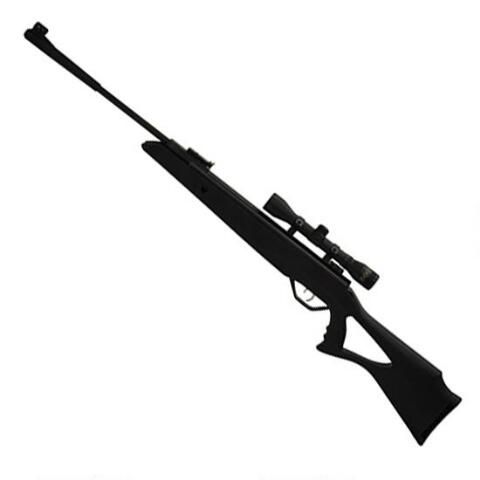 The Longhorn Air Rifle Combo With Synthetic Stock is part of the Marksman Sportsman Series so you know that you can count on it being a precision air gun. It has a break barrel with a metal front and a black synthetic stock with a pistol grip. It also features rear sights with fiber optics and a 4 x 32 scope and mounts. It will send a .177 lead pellet at 1,200 fps. Specifications and Features: Black synthetic stock with pistol grip Metal front and rear sights with fiber optics 4 x 32 scope and mounts included Break barrel Metal Front and Rear Sights With Fiber Optics Stock: Black Synthetic Caliber: .177 Ammo: Lead Pellets FPS: Up to 1200