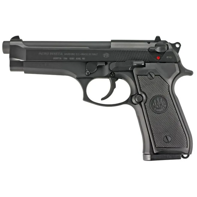 Beretta 92 FS Features: The 92FS is a double/single-action semiauto pistol that employs an open-slide, short-recoil delayed locking block system, which delivers exceptional accuracy and reliability. In particular, the open-slide design helps eliminates “stove-piping” and prevents debris from accumulating in the slide. This pistol offers a variety of features that make it safe, easy to use and dependable for military, police, and self defense use. Its reversible magazine release lets you use either hand for tactical magazine changes, while its ambidextrous safety-decocker makes it flexible for right- or left-handed persons or for shooters trying out different gripping or shooting styles. Its Bruniton finish is highly resistant to sweat and corrosion, and after shooting, a tool-free disassembly latch makes it a snap to take the pistol apart for cleaning. These and countless other useful features make the 92FS the choice of military and police professionals all over the world, as well as individuals wanting the absolute best for sport or self-protection. Beretta 92FS Specifications: Family: 92 Pistol Series Model: 92FS Type: Semi-Auto Pistol Action: Double / Single Action Finish: Bruniton Frame: Alloy Frame Grips: Black Plastic Weight: 33.3 oz. Caliber: 9mm Capacity: 15 # Of Mags: 2 Magazine Desc: 15 Rd. Barrel: 4.9″ Overall Length: 8.5″ Sights: 3-Dot Safety: Ambi Manual Safety / Decocker Additional Info: Combat Trigger Guard Additional Info: Loaded Chamber Indicator Additional Info: Reversible Mag Release Gun Case: Plastic