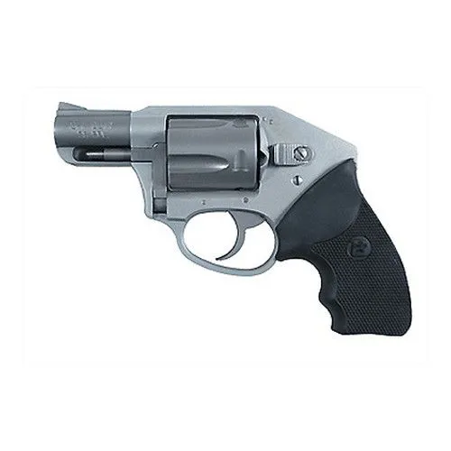 CHARTER ARMSOFF DUTY•Snag-free completely enclosed DAO hammer •Matte Stainless stainless 5-shot cylinder barrel & controls •Small aluminum frame with anodized finish •Fixed sights •Compact black rubber grip finger grooved •+P RatedCHARTER ARMS REVOLVERS COMMON FEATURES•Lightweight compact •American made •1-pc barrel/lug/sight •8-groove button rifled barrel •Protected ejector rod •3-point cylinder lock-up •Ergonomic trigger does not pinch finger •Barrel is threaded into frame •Full hammer block safety system •Quick lock time •No side plate •No cylinder stop to interfere with reloading or speed loaders