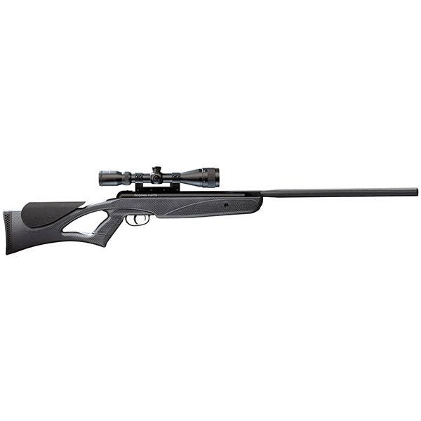 BENJAMIN® NPS•Break-barrel, single-shot •Features Nitro Piston technology for smooth cocking, quick locking time, & reduced nose, recoil & vibration •Dovetail mounting rail •Steel, rifled bull barrel w/integrated shroud •Adjustable 2-stage trigger •Lever safety •Synthetic, all-weather, ambidextrous thumbhole stock w/adjustable cheek piece & carbon fiber finish •18 FPE •Includes CenterPoint 3-9x40mm scope w/adjustable objective, range estimating reticle & target adjustable windage & elevation turrets •Ideal for pest control, small game hunting & target shooting •OAL: 43.87” •Wt.: 6.975 lbs. Shoots: .177 pellets – FPS: 1200