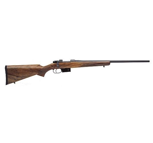 CZ-USA527 AMERICAN•Recessed target crown •Blued metal finish •American-style Turkish Walnut stock with grip checkering & swivel studs •No sights •Includes 1″ steel scope rings •LOP: 13.5″CZ 527 STANDARD FEATURES•True micro-length Mauser-style action •Controlled round feed •Cold hammer-forged barrel •Single set trigger •2-Position safety •Detachable single-stack mag •16mm scope dovetails milled into the square bridge receiver