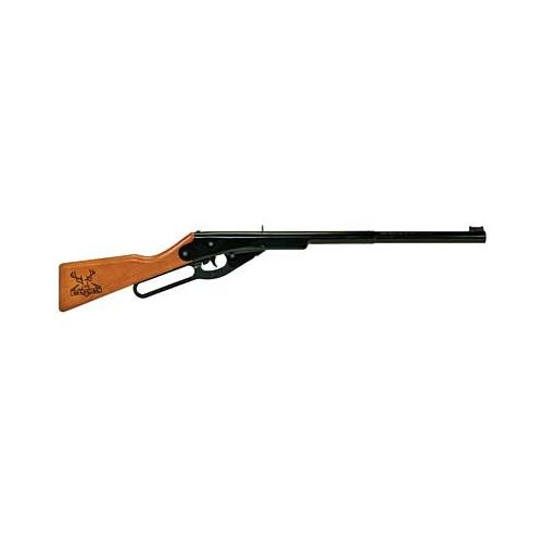 Lever-action spring air. Stained solid wood stock & forend w/Buck imbedded. TruGlo fiber optic sight open fixed rear. Smooth bore steel barrel. Crossbolt trigger block safety. Cap.: 400-shot. Vel.: 275 fps.