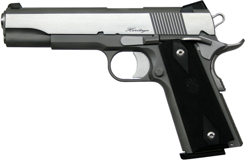 The Heritage is our entry-level 1911, allowing shooters to experience Dan Wesson quality at the most affordable price possible. Even though this model is our most economical, it features all the same quality components that we use in our 1911 models.A Government-size model, it has a 5-inch barrel and is chambered in .45 ACP. The slide features our Clark-style rib and wears a tritium front sight and plain black, snag-free rear. The sides of the slide have a nice brushed polish on the flats while the rounds are sandblasted to match the matte forged frame with undercut trigger guard and smooth front strap. Grips are double diamond rubber.The Heritage is a great introduction to the Dan Wesson 1911 experience and we are confident it will become an heirloom, handed down from generation to generation.