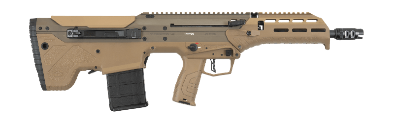Desert Tech MDRX Features The MDRX (Micro Dynamic Rifle Xtreme) is designed for maximum concealment and ambidexterity, allowing operators to return fire at any angle without exposing unnecessary parts of their body to threats. It features upgraded polymer resin to better withstand high impact falls and improved gas block drainage to ensure maximum reliable performance in water and mud submersion testing. The trigger pull and creep have been reduced to allow for more accurate shooting capability. The flash suppressor was designed to reduce the flash better than current options found on the M4. Desert Tech’s patented forward-ejection system allows operators to quickly transition between shoulders without any need to reconfigure the rifle. Now operators can respond to threats more quickly and maintain full lethality against threats without sacrificing speed or power. Desert Tech MDRX Specifications Caliber: 308 Win Model: MDRX Stock Finish: Flat Dark Earth Action: Semi-Auto Barrel Length Range: 20″ to 20.99″ Sights: None, Optic Ready Capacity: 20+1 Muzzle: Threaded Magazine Type: AR-10 Grips: Flat Dark Earth Polymer Hand: Ambidextrous OAL: 30.02″ Receiver Finish: Flat Dark Earth Receiver Material: Steel Stock Description: Fixed Bullpup Stock Finish Group: Brown Stock Material: Synthetic Thread Pattern: 5 / 8″-24 tpi Trigger: Two-Stage Twist: 1:10″ Weight: 9.05 lbs Barrel Description: 4140 Steel Barrel Finish: Black