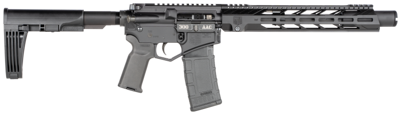 Diamondback DB15 Features This DB15 Pistol features a pistol-length, heavy, 4150 ChromeMoly barrel with KAK flash can, pistol-length gas system, shot-peened Mil-Spec 8620 bolt carrier. It utilizes 7075-T6 receivers, 13″ M-Lok handguard, Magpul MOE-K2 grip, MBUS sights, and a Tailhook MOD 2 stock. Diamondback DB15 Specifications Caliber: 300 Blackout Model: DB15 Stock Finish: Black Action: Semi-Auto Barrel Length Range: 10″ to 10.99″ Sights: MBUS Folding Capacity: 30 1 Muzzle: KAK Flash Can Grips: Black Magpul MOE-K2 Hand: Right Handguards: M-Lok Receiver Finish: Black Receiver Material: 7075 T6 Aluminum Stock Description: Gearhead Works Tailhook Mod2 Brace Stock Material: Synthetic Thread Pattern: 1 / 2″-28 tpi Twist: 1:8″ Barrel Description: 4150 Chrome Moly Barrel Finish: Black Nitride Barrel Length: 10″