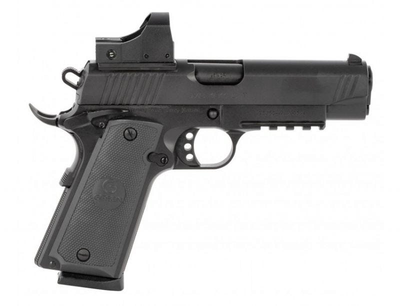 Girsan MC1911C Features The Girsan MC1911C, form EAA, is a budget friendly 1911 that packs all of the features that high end 1911’s carry. This model features novak style rear sights, ambidextrous safety, extended beavertail, deep slide serrations, 5 MOA optic, and a crisp 3.5-4 lb trigger pull. Girsan MC1911C Specifications Caliber: 45 ACP Model: Girsan Series: MC1911C Frame Finish: Black Action: SAO Barrel Length Range: 4″ to 4.99″ Slide Description: Black Steel Capacity: 8+1 Frame Material: Steel Grips: Black Checkered Polymer Hand: Right OAL: 8″ Safety: Ambidextrous Sight Configuration: Novak 3-Dot Sight Style: Contrast Weight: 2.35 lbs Barrel Length: 4.40″