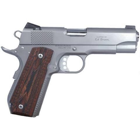 The Kobra Carry is an ideal choice for those who want the power and reliability of a 1911 pistol in a more compact package. It uses the innovative Ed Brown bobtail frame which reduces printing and minimizes the problems inherent with shorter slides on 1911s. Simple, functional, reliable and accurate, the Kobra Carry is unmatched. The directional snake skin treatment allows your hand to slide up the grip with ease, then bites in and holds in the opposite direction when you need it. Engineered for performance and hand-crafted to perfection, Ed Brown firearms are second to none.