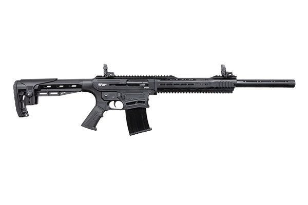 GF00 Sport Features The GF00 Sport is a 12 Gauge semi-automatic shotgun from GForce Arms. These shotguns feature a 20″ barrel and come with two 5-round magazines. Additional features include a black synthetic stock with adjustable comb and folding sights. GF00 Sport Specifications Brand: GForce Arms Model: GF00 Sport Type: Shotgun: Semi-Auto Caliber: 12 Gauge Finish: Matte Black Action: Semi-Automatic Stock: Black Synthetic W/Adj Comb Sight: FT:Folding ,RR:Folding Adjustable Barrel Length: 20 Weight: 8.0 lbs Capacity: 5+1 # of Mags: 2 Safety: Cross-Bolt Safety Receiver: Matte Black ,Aluminum Chamber: 3 Butt Plate: Black Rubber Recoil Pad Features: M-LOK Handguard