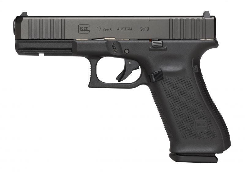 GLOCK G17 GEN5 MOS 9MM FEATURES With the G17 Gen5 MOS GLOCK enhances the already near-perfect Gen5 model of “The original” with the addition of the Modular Optic System (MOS). The slide is precision machined to provide a mounting system for popular optic sights. With multiple adapter plates, you can quickly and easily mount miniature electronic sights to the rear of the Gen5 GLOCK slide,which has front serrations for easier and quicker manipulations. 17 GEN 5 MOS SPECIFICATIONS Family: G17 Series Model: G17 G5 Mos Type: Semi-auto Pistol Action: Safe Action Finish: nDLC Finish Frame: Polymer Frame Weight: 25.26 Oz. Caliber: 9mm Capacity: 10 # Of Mags: 3 Magazine Desc: 10 Rd. Barrel: 4.49″ Overall Length: 7.95″ Sights: Glock Fixed Sights Safety: No Manual Safety Addl Info: Front Slide Serrations Addl Info: Flared Mag-well Addl Info: Modular Optics System Gun Case: Plastic