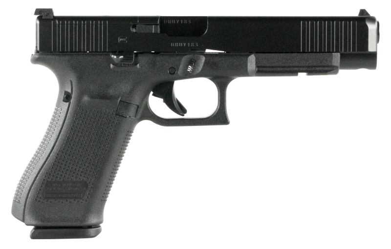 GLOCK 34 GEN 5 MOS FEATURES: The Glock 34 Gen 5 MOS features a slightly longer slide and barrel (5.31″ barrel) compared to the Glock 17. This model also features the innovative MOS (Modular Optics System) which is milled into the slide to allow a small red dot to be attached for faster target acquisition. The Gen 5 has been modified a good bit from the Gen 4 and features a frontstrap with no finger grooves, as well as the Glock Marksman Barrel, flared magazine well, and the new and improved nDLC finish. This specific model also comes standard with front serrations on the slide and adjustable sights. GLOCK G34 GEN 5 MOS SPECIFICATIONS: Action: Striker Action Finish: nDLC Frame: Polymer Frame Weight: 25.95 oz. Caliber: 9mm Capacity: 17 Barrel: 5.31″ Overall Length: 8.74″ Sights: Adjustable Sights Safety: No Manual Safety Front Slide Serrations Flared Mag-Well Modular Optics System Includes 3 magazines