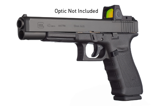 Glock 40 Gen 4 M.O.S. 10MM Features: The G40 Gen4 in the MOS Configuration is chambered in 10mm and combines a full 6-inch barrel for an improved velocity with a magazine capacity of 15 rounds. The G40 Gen4 in MOS configuration is a powerful yet easily carried pistol; perfect for the outdoorsperson, hunter and sport shooter. It is designed to give the handgun hunter the ultimate choice in semi-automatic gaming pistol and has proven to be more than capable of taking down game such as Whitetail Deer, Russian Boar and even Feral Hogs. Glock 40 Gen 4 M.O.S. 10MM Specifications: FAMILY:G40 Series MODEL:G40 G4 MOS TYPE:Semi-Auto Pistol ACTION:Safe Action FINISH:Gas Nitride STOCK/FRAME:Polymer Frame WEIGHT:28.15 oz. CALIBER/GAUGE:10mm CAPACITY:10 # OF MAGS:3 MAGAZINE DESC:10 rd. BARREL:6.02″ OVERALL LENGTH:9.49″ SIGHTS:Adjustable Glock Sights SAFETY:No Manual Safety ADDL INFO:Modular Optics System GUN CASE:Plastic