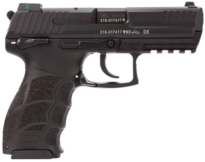 P30S V3 Features HK’s P30 is a modern police and security pistol that combines function and safety. Ergonomic features include a special grip frame with interchangeable backstrap inserts and lateral plates, allowing the pistol to be individually adapted to any user. The frame also has a Picatinny rail molded into the front. Its slide is one-piece machined from nitro-carburized steel with a corrosion resistant blued finish. The P30 utilizes ambidextrous dual slide and magazine release levers, and extractor which doubles as a loaded chamber indicator, and polygonal bore profile. This V3 S model has an ambidextrous safety/rear decocking button, spurred hammer, polymer recoil absorber “stop” bushing, and night sights. Included are two backstraps, lateral grip plates, and three 13-round magazines. P30S V3 Specifications Caliber: 40 S&W Model: P30S Series: V3 Frame Finish: Black Action: Single Action / Double Action Barrel Length Range: 3″ to 3.99″ Slide Description: Blued Steel Capacity: 13+1 Frame Material: Polymer Grips: Black Interchangeable Backstrap Hand: Right Includes: 3 Magazines Overall Length: 7.12″ Safety: Ambidextrous Safety / Decocker Sight Configuration: Night Sight Style: Night Weight: 26.08 oz Barrel Description: Polygonal Rifling Barrel Length: 3.85″