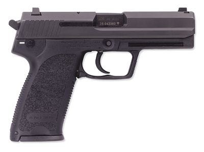 USP V1 Features All USPs feature a fiber-reinforced polymer frame stiffened by stainless steel inserts at areas subject to stress and friction. HK pioneered this use of polymer materials in the production of handguns more than 30 years ago with the development of the VP70Z and P9S pistols. Using a modified Browning-type action with a special patented recoil reduction system, the USP recoil reduction system reduces recoil effects on pistol components and also lowers the recoil forces felt by the shooter. The USP recoil reduction system is insensitive to ammunition types and requires no special adjustment or maintenance. Variant 1 is double-action/single-action with SAFE position; control lever (manual safety/decocking lever) is mounted on left side of the frame. This model comes with night sights and three 10-round magazines. USP V1 Specifications Caliber:.45 ACP Model:USP Series:V1 Frame Finish:Black Action:SA / DA Barrel Length:4.41″ Slide Description:Blued Steel Capacity:10+1 Frame Material:Polymer Grips:Black Polymer Hand:Right OAL:7.91″ Safety:Manual / Decocker Sight Configuration:Night Sight Style:Night Weight:31.45 oz Barrel Type:Polygonal Rifled
