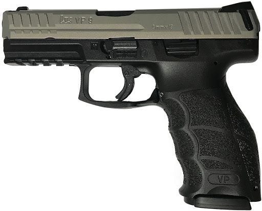 H&K VP9 Cerakote Savage Stainles Features The VP9 shares similar aesthetics with the P30, which has a direct influence on the design. However HK engineers we dissatisfied with current striker fired technology, and in particular the triggers. The VP9 trigger has a consistent pre-travel pull with a positive crisp break, while the trigger reset is short and fast making follow up shots a breeze. The VP9 is also sports a MIL-STD-1913 picatinny rail as well as HK’s hostile environment finish. H&K VP9 Specifications: Heckler & Koch VP9 Semi Auto Pistol 81000194 9mm Luger 4.09″ Polygonal Barrel 6 groove 1:9.8″ right hand twist 15 Round capacity High grade fiber reinforced polymer frame Interchangeable back strap inserts Ambidextrous magazine release Firing Pin block Trigger latch safety Tool-less field strip Mil-STD-1913 picatinny rail with four segments rated to 5.6 ounces for lights, lasers and accessories Extended service life 3 Dot, Radioactive Luminous Striker Fired 5.4lbs trigger pull .24″ trigger travel .12″ return trigger travel Recoil operated with browning type modified linkless locking system 7.34″ Overall length 5.41″ Tall 1.32″ Wide 6.38″ Sight radius 3.28 ounces without magazine 25.56 ounces with magazine Black/Stainless VP9 vs VP9SK Review VideoSEE ALL VP9 AND VP9SK