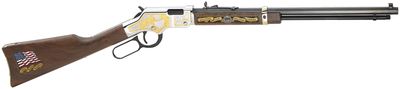 FAMILY:Golden Boy MODEL:Golden Boy Military Svc 2nd Ed TYPE:Rifle ACTION:Lever Action FINISH:Blue STOCK/FRAME:Wood Stock STOCK/GRIPS:Wood CALIBER/GAUGE:22 LR CAPACITY:16 1 BARREL:20″ OVERALL LENGTH:38.5″ RATE-OF-TWIST:1-in-16 RECEIVER:Brasslite SIGHTS:Open Rifle Sights SAFETY:Half Cock ADDL INFO:Brass Buttplate and Receiver ADDL INFO:Octagon Barrel