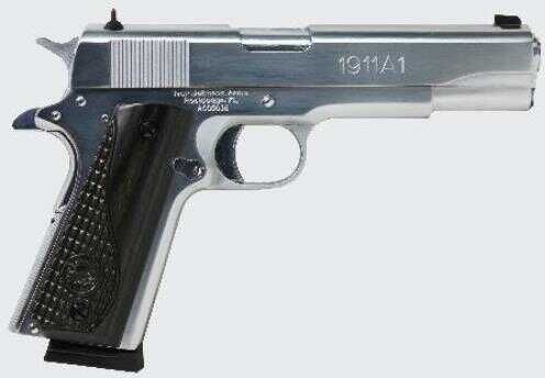 Iver Johnson 1911A1 38 Super 5″ 8 RDs Features: Iver Johnson builds some beautiful examples of the iconic John Moses Browning iconic design. The 1911 is one of the most widely recognized and best loved handguns in the world. This 1911A1 model is chambered in .38 Super and features black wood grips and a hard chrome finish. The internal parts are all GI-style. This pistol is equipped with fixed sights and has an 8-round magazine capacity. Iver Johnson 1911A1 38 Super 5″ 8 RDs Specifications: Iver Johnson 1911A1CHROME38 .38 Super Single action only semi automatic 5″ barrel 8 rounds capacity GI style internal parts Fixed sights Black wood grips Weight 38 oz Chrome