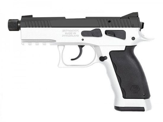 KRISS SPHINX SDP 9MM Threaded Barrel, COMP, Alpine, 3.7 in BBL, 17 Rounds, Duty Features: You will be able to add modern tactical shooting accessories thanks to a Picatinny rail on the frame. The front and rear cocking serrations will give the users to customize the options of firearm manipulation and the highly contrasted dotted front sight and black rear sight allows for quick target acquisition. The ambidextrous features also include the decocking lever, and you can adjust the magazine release to left or right side. The slide release lever also serves as the take-down pin and is located on the left side of the Compact. Every component of the SDP Compact is manufactured to the highest standards and tolerances are extremely tight KRISS SPHINX SDP 9MM Threaded Barrel, COMP, Alpine, 3.7 in BBL, 17 Rounds, Duty Specifications: Caliber: 9 millimeter Overall Length: 7.4 inches / 188 millimeter Overall Height: 5.5 inches / 144 millimeter Overall Width: 1.37 inches/ 35 millimeter Weight: 29.06 oz / 824 grams Barrel Length: 3.7 inches/ 95 millimeter Barrel Threading: 13.5 x 1 LH Sight Radius: 5.7 inches/ 148 millimeter Sights: Front: Iron blade with white dot, Rear: Serrated fixed sight Action: DA/SA with ambidextrous decocking lever Trigger Pull Weight: SA: 4.0 lb / 1.8 kg, DA: 10.0 lb / 4.5 kg Slide material: Steel Slide finish: Cerakote Frame material: Upper: Milled aluminum, Lower: Milled aluminum Frame finish: Cerakote Grip: incl. finger molds Interchangeable Inserts: Polymer base with Rubber Magazine catch: left / right-reversible Magazine capacity: 17 Finish: Alpine White
