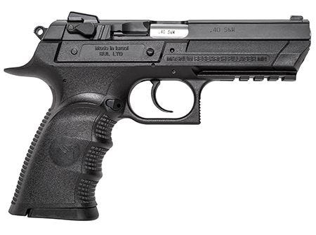 Baby Eagle Series MODEL:Baby Eagle III Full Size TYPE:Semi-Auto Pistol ACTION:Double / Single Action FINISH:Black STOCK/FRAME:Polymer Frame STOCK/GRIPS:Black Polymer CALIBER/GAUGE:40 SW # OF MAGS:2 MAGAZINE DESC:13 rd. BARREL:4.4″ OVERALL LENGTH:8″ SIGHTS:White 3-Dot Combat ADDL INFO:Ambidextrous Slide Decocker ADDL INFO:Ambidextrous Magazine Catch ADDL INFO:Tactical Rail