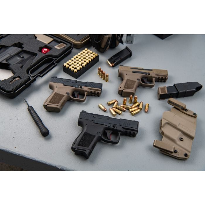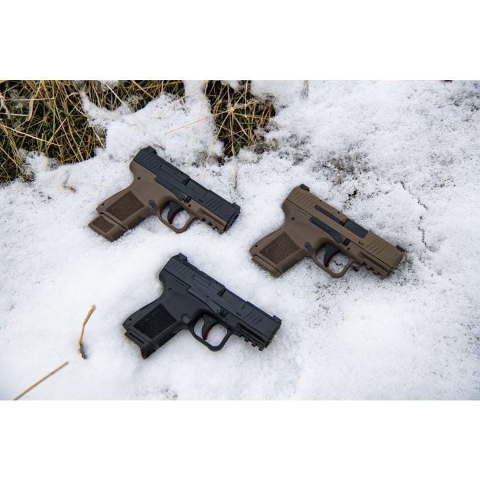 The CANiK METE MC9 9mm, semi-automatic, striker-fired pistol features an integrated safety and comes standard with a smooth trigger take-up, crisp break, and short reset. It was designed with concealed carry comfort in mind. The white dot front sight contrasts with the blacked out rear sight to allow for quicker sight alignment and target acquisition. This dependable, accurate handgun checks all the boxes… it has everything you need and nothing you don’t. The Mete MC9 will be initially offered in black, flat dark earth (FDE), and two tone black/fde.