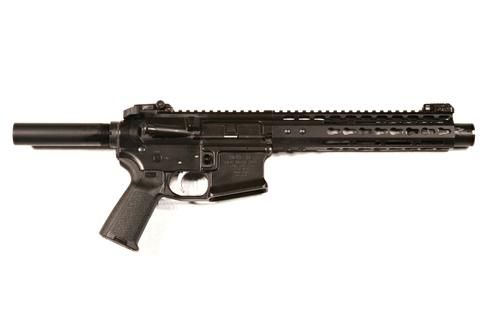 NOVESKE GEN III DIPLOMAT PISTOL – 5.56 •Stainless steel barrel, 1/7 polygonal twist •.750 Lo-Pro gas block, pinned to barrel •KX5 flash suppressor •Gen III precision machined billet receivers from 7075-T6 w/extended feed ramps featuring anti-rotation interface w/handguard •Hardcoat type III anodizing, w/black cerakote ceramic coating •Noveske marked Geissele Super Badass charging handle •Shot peened & MP tested bolt •Shortened pistol carrier w/staked carrier key •7 oz. pistol buffer •ALG Defense ACT trigger •Pistol receiver extension •Staked Noveske QD end plate •NSR-9” free floating handguard w/1913 top rail •Miad pistol grip •Magpul MBUS Pro folding sights •(1) 30 round magazine •Barrel length: 7.5″ •Capacity: 30 rounds
