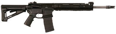 NKE Gen III Recon Switchblock 5.56mm 16 Inch Stainless Steel Barrel 1/2-28 TPI Trifecta Flash Hider MBUS Pro Sights NSR-11.5 Handguard Magpul STR Stock MIAD Grip 30 Round Gen III Recon NSR Switchblock Gen III platform. Intermediate gas system. Features precision machined 7075-T6 upper and lower receivers with hardcoat type III anodizing and Cerakote coating. Sixteen inch stainless steel threaded barrel, with Switchblock pinned to barrel. 1/2-28 threads. Saker Trifecta flash hider. MBUS Pro back up iron sights by Troy Industries. ALG Defense ACT trigger. Staked Noveske QD end plate. Mil-spec 6-position receiver extension. NSR-11.5 free floating handguard with 1913 top rail and black hardcoat type III coating. Raptor ambidextrous charging handle. Magpul STR carbine adjustable stock and MIAD pistol grip. One 30-round magazine.