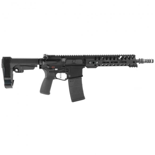 Renegade Plus Features POF’s Renegade Plus AR Pistol addresses all of the weak points of the direct impingement system with upgrades that go well above mere aesthetics, including POF roller cam pin and patented heat sink barrel nut. The Dictator 9-position adjustable gas block gives ultimate control, whether tuning for ammo load or suppressor use, and the straight gas tube eliminates heat build-up from the weak points of standard gas tubes. The Renegade Plus is built off of the Gen 4 billet lower receiver and Ultimate Bolt Carrier Group. This receiver is completely ambidextrous and includes a flat, 3.5 lb. match grade trigger with KNS Precision anti-walk pins. The magic in the upper receiver is held within POF’s Ultimate Bolt Carrier Group which is high phosphate nickel coated for maximum protection and reliability and features an integrated gas key (no screws required). The match-grade chrome-moly barrel is 5R button rifled with polygonal rifling for extreme accuracy and an incredible boost to bullet velocity compared to mil-spec AR barrels. Like the Renegade, the Renegade Plus comes with the M-Lok compatible Renegade rail. This 300 Blackout model has a 10.5″ nitride heat-treated barrel, black finish, and includes a 5-position SB Tactical pistol stabilizing brace stock. Renegade Plus Specifications Caliber: 300 Blackout Model: Renegade Series: Plus Stock Finish: Black Action: Semi-Auto Barrel Length Range: 10″ to 10.99″ Sights: None, Optic Ready Capacity: 30+1 Grips: Black Polymer Hand: Right OAL: 28″ Receiver Finish: Black Hard Coat Anodized Receiver Material: Aluminum Safety: Ambidextrous Stock Description: SBA3 Pistol Brace Stock Material: Synthetic Weight: 5.80 lbs Barrel Finish: Black Nitride Barrel Length: 10.50″