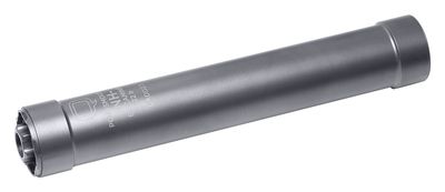 Stainless steel and titanium construction. Endcap can be removed with a standard 1/2 inch socket; no special tool required for quick and easy disassembly for cleaning. Utilizes direct thread attachment; 1/2-28 TPI. Supported calibers: .22 LR. Length: 5.95 inches. Weight: 4.3 ounces. Diameter: 0.95 inches. Made in the USA. All NFA rules apply.