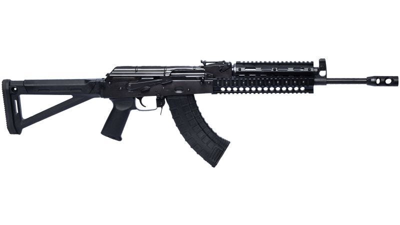 RAK47 Features This is a tactical version of the American made classical Ak-47 rifle (7.62x39mm) that measures 36.5″ in overall length. RAK47 Specifications Manufacturer: Riley Defense Manufacturer Part #: RAK47-T-MP Model: RAK47 Action: Semi-automatic Type: AK Caliber: 7.62X39 Barrel Length: 16″ Color: Black Grips: Magpul Accessories: 1 Mag Capacity: 30Rd Sights: Adjustable Sights Stock: Magpul MOE