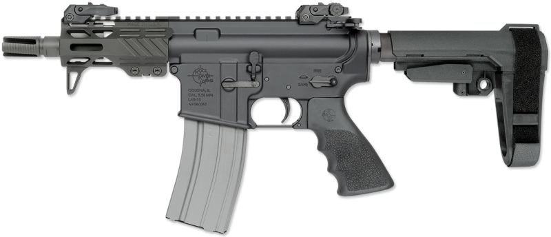 RUK-15 Features The Rock River RUK-15 pistol features a forged RRA LAR-15 lower receiver; forged A4 upper receiver; low profile gas block, RRA NSP flip-up front and rear sights and RRA lightweight aluminum free floating, 4.25″ pistol length, M-LOK compatible handguard. Includes Low Pro M-LOK compatible handstop and magazine. RUK-15 Specifications Caliber: 223 Rem Model: RUK-15 Stock Finish: Black Action: Semi-Auto Barrel Length Range: 4″ to 4.99″ Sights: Flip Up Front & Rear Capacity: 30+1 Muzzle: Vortex Flash Suppressor Grips: Black Hogue Rubber OAL: 22.25″ Receiver Finish: Black Receiver Material: Aluminum Stock Description: SB Tactical SBA3 Adjustable Arm Brace Stock Material: Synthetic Thread Pattern: 1 / 2″-28 tpi Trigger: Single-Stage Twist: 1:9″ Barrel Description: Chrome Moly Barrel Finish: Black Barrel Length: 4.50″