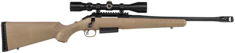 Ruger American Features The Ruger American offers minute-of-angle accuracy that can make every hunt a success. The ergonomic, lightweight synthetic stock designed for quick, easy handling blends a classic look with modern forend contouring and grip serrations with a soft rubber buttpad for maximum recoil reduction. The one-piece, three-lug bolt with 70 degree throw provides ample scope clearance and utilizes a full diameter bolt body and dual cocking cams for smooth, easy cycling from the shoulder. Patented Power Bedding, integral bedding block system positively locates the receiver and free-floats the barrel for while the Marksman Adjustable trigger offers a crisp release with a pull weight that is user adjustable between 3 and 5 pounds. Features a compact, cold hammer-forged, threaded barrel with factory installed Ruger Hybrid Muzzle Brake; visible, accessible and easy-to-actuate tang safety provides instant security and a factory-installed, one-piece Picatinny scope base with a Weaver scope mounted on top. Ruger American Specifications Caliber: 450 Bushmaster Model: American Stock Finish: Flat Dark Earth Action: Bolt Barrel Length Range: 16″ to 16.99″ Scope: Weaver 3-9x40mm Capacity: 3+1 Muzzle: Ruger Hybrid Muzzle Brake Hand: Right Length of Pull: 13.75″ Overall Length: 36″ Receiver Finish: Matte Black Receiver Material: Alloy Steel Safety: Tang Stock Finish Group: Brown Stock Material: Synthetic Thread Pattern: 11 / 16″x24 tpi Trigger: Ruger Marksman Adjustable Twist: 1:16″ Weight: 5.50 lbs Barrel Finish: Matte Black Barrel Length: 16.12″