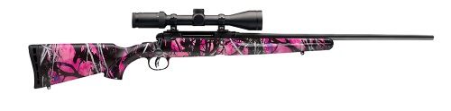 SAVAGE® AXIS II XP YOUTH MUDDY GIRL WITH BUSHNELL SCOPE •Youth Muddy Girl camo stock •Matte stainless steel barrel •Equipped with mounted & boresighted Bushnell Banner 3-9x40mm scope •Bolt-action •Adjustable AccuTrigger •Synthetic stock •Detachable box mag