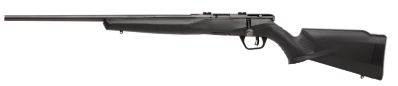 Savage B17 F .17 HMR Features: Savage has added to its line of modern new firearms with he B Series Bolt-action rimfire rifles: B22, B22 Magnum and B17. The new model’ ergonomically designed stock, higher comb, top tang safety and target style, vertical pistol grip allows shooters to hold the rifle in a more natural position that puts less pressure on the wrist. Like the popular A series rimfires, all B series rifles feature a 10-round rotary magazine and the accuracy-boosting adjustable AccuTrigger. B17 F Specifications: MODEL:B17F TYPE:Rifle ACTION:Bolt Action FINISH:Blued STOCK/FRAME:Synthetic Black WEIGHT:5.7 lbs. CALIBER:17 Hornady Magnum Rimfire CAPACITY:10 BARREL:21″ OVERALL LENGTH:31″ ADDL INFO:AccuTrigger