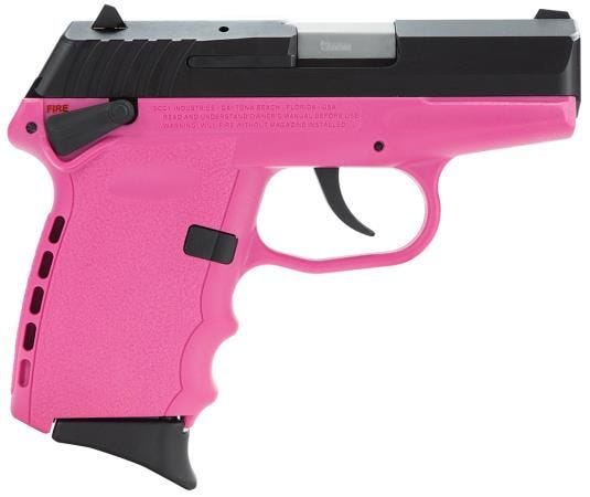 Barrel: machined from bar stock with 7 lands and grooves having a 16%u20101 right hand twist. Receiver: 7075%u2010T6 aircraft grade heat treated aluminum alloy, machined from bar stock. Grip/Frame: Made from Zytel polymer, with ergonomic finger grooves and an integral “RE-COIL CUSHION” on the back%u2010strap. Recoil Spring System: all steel, fully encapsulated for ease of disassembly and reassembly. Slide Lock/Release: steel with a Zytel over molded polymer extension for ease of operation. 3 dot sight system: steel rear sight, adjustable for windage only with locking screw. Hammer firing system: double action only, internal hammer with inertial firing pin to prevent accidental discharge if dropped. Manual Guarded Safety: Newly designed with a guard molded into the frame. Double action trigger: specifically designed for shooter comfort and accuracy by designing the system to have a smooth effortless, consistent 9 pound trigger pull. Magazine: included with (2) double stack, 10 round capacity magazines with finger extension base installed and 2 flat magazine bases included. Trigger Guard Lock: custom designed to properly fit and be child resistant. Includes 2 keys. SCCY INDUSTRIES CPX-1 9MM •Version: CPX-1 (Ambidextrous Safety) •Slide Finish: Black Nitride •Grip Frame: Pink •Compact concealed carry •DAO trigger •Barrel & slide machined from 416 stainless steel bar stock •Fully encapsulated all steel spring system (including steel guide rod) •3-dot sight system (rear drift-adjustable for windage) •Zytel polymer frame w/finger grooves & recoil-absorbing backstrap •Includes trigger lock & (2) 10-round mags. w/flush & extended baseplates •Width: 1.1″ •OAL: 5.7″ •Wt.: 15 oz.
