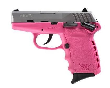 CPX-1 Pistol Features SCCY’s CPX-1 is designed for concealed carry but large enough to get a good firm grip. It is considered to be one of the best priced, precision made “Pocket Pistols” on the market. Chambered for 9mm, it has a 3.1″ barrel with a 16:1″ right hand twist. The receiver is made from 7075 T6 aircraft grade heat treated aluminum alloy. Its Zytel polymer frame features ergonomic finger grooves and an integral recoil cushion on the backstrap. The slide is machined from stainless steel with a Zytel overmolded polymer extension for ease of operation. It has 3-dot sights with a windage-adjustable rear. The DAO has an internal hammer with inertial firing pin to prevent accidental discharge, and an external thumb safety with a guard molded into the frame. It has a smooth, consistent 9-pound trigger pull. It comes with two 10-round magazines with finger extensions bases installed and two flat magazine bases. This CPX-1 has a satin slide with a pink frame. CPX-1 Pistol Specifications Brand: SCCY Industries Category: Pistols Caliber: 9mm Luger Model: CPX-1 Frame Finish: Pink Action: DAO Barrel Length Range: 3″ to 3.99″ Slide Description: Stainless Steel Capacity: 10+1 Frame Material: Polymer Grips: Pink Polymer Hand: Right OAL: 6″ Safety: Manual Sight Configuration: 3 Dot Adjustable Rear Sight Style: Adjustable Weight: 15 oz Barrel Length: 3.10″