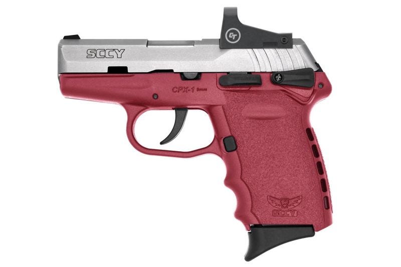 CPX-1 RD Features SCCY’s CPX-1 is designed for concealed carry but large enough to get a good firm grip. It is considered to be one of the best priced, precision made “Pocket Pistols” on the market. Chambered for 9mm, it has a 3.1″ barrel with a 1:16″ right hand twist. The receiver is made from 7075 T6 aircraft grade heat treated aluminum alloy. The Zytel polymer frame features ergonomic finger grooves and an integral recoil cushion on the back-strap. The slide is machined from stainless steel with a Zytel over-molded polymer extension for ease of operation. Now taken to the next level, the CPX-1 RD comes equipped with a Crimson Trace CTS-1500 Reflex sight. CPX-1 RD Specifications Caliber: 9mm Luger Model: CPX-1 Series: RD Frame Finish: Crimson Action: Double Action Only Barrel Length Range: 3″ to 3.99″ Slide Finish: Stainless Slide Material: Stainless Steel Capacity: 10+1 Frame Material: Polymer Grips: Crimson Red Polymer Hand: Ambidextrous Includes: Crimson Trace CTS-1500 Overall Length: 6″ Safety: Manual Sight Configuration: Iron Sight Style: Fixed Trigger: 9 lb Twist: 1:16″ Weight: 17.50 oz Barrel Length: 3.10″