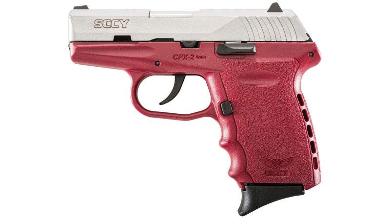 SCCY INDUSTRIES CPX-2 9MM •Version: CPX-2 (NO external safety) •Slide Finish: Natural Stainless •Grip Frame: Crimson Red •Compact concealed carry •DAO trigger •Barrel & slide machined from 416 stainless steel bar stock •Fully encapsulated all steel spring system (including steel guide rod) •3-dot sight system (rear drift-adjustable for windage) •Zytel polymer frame w/finger grooves & recoil-absorbing backstrap •Includes trigger lock & (2) 10-round mags. w/flush & extended baseplates •SCCY Perpetual Warranty •Width: 1.1″ •OAL: 5.7″ •Wt.: 15 oz.