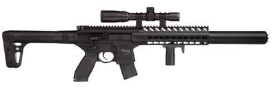 The SIG Sauer MCX ASP air rifle uses a 90-gram CO2 cartridge and is 88-gram cartridge compatible. This semi-automatic air rifle is perfect for tactical drills, target practice, or plinking fun! It has a 30 round RPM mag, manual safety, and 1-4×24 Sig Optic. The durable metal housing and aluminum handguard sports a picatinny accessory rail for your favorite optics. It features authentic SIG MCX performance and handling giving you more realistic training and practice in an economical platform! Specifications and Features: SIG Sauer MCX ASP CO2 Air Rifle Semi Automatic Uses a 90g CO2 Cartridge (88g CO2 Cartridge Compatible) .177 Caliber (4.5mm) 30 Round RPM Mag Velocity 750 fps 17.7″ Rifled Steel Barrel Manual Safety Aluminum Handguard Picatinny Rail Metal Housing Polymer Fixed Stock Overall Length 36″ Weight 7 lbs Black Includes: 1-4×24 SIG Scope Tactical Forgrip