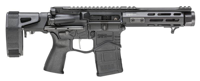 Saint Edge Features The Saint Edge features a enhanced, nickle boron coated single stage trigger allows for a crisp, clean trigger press with zero creep. Its lightweight design is engineered for improved accuracy, reliability, and consistent performance comparable to custom AR builds often costing much more. The sleek, patent-pending free-float handguard is slim and M-Lok compatible for accessories. Underneath, a pinned, mid-length, adjustable gas block aids in flawless feeding and ejection. To aid in accuracy, the 5.50″ barrel, CMV Melonite finished inside and out, has an optimum 1:8 twist, and a unique SA Hartbrake muzzle brake. Saint Edge Specifications Caliber: 223 Rem,5.56 NATO Model: Saint Series: Edge Stock Finish: Black Action: Semi-Auto Barrel Length Range: 5″ to 5.99″ Capacity: 20+1 Muzzle: SA Hatebrake Grips: Black Riptilia CQG Hand: Right Handguards: M-LOK Free Float Overall Length: 18.75″-23.50″ Receiver Finish: Black Hard Coat Anodized Receiver Material: 7075 T6 Aluminum Stock Description: 5 Position Max Defense SCW Brace Stock Material: Synthetic Trigger: Single-Stage Twist: 1:8″ Weight: 5.10 lbs Barrel Description: Chrome Moly Vanadium Barrel Finish: Black Melonite Barrel Length: 5.50″