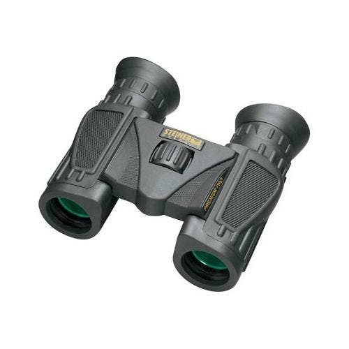 Steiner Predator Binoculars w/Green Rubber ArmorThe Predator Pro binoculars are designed for big game hunting and rugged outdoor use. The ultra light weight binoculars have a strong aluminum housing with a specially designed, rugged armor covering that insures a firm grip. The large center focus wheel is perfect for operation even in cold, wet weather. The green-tinted Predator lenses filter out the colors of haze and foliage and amplify the visibility of colors common to wildlife and game animals. The light weight Predator Pro binoculars incorporate the Steiner PC-5 optics and are fully multi-coated on every lens surface throughout the system, delivering game-sensing contrast and exceptional light transmission. All Predator models come with a 10-Year Limited Warranty and are equipped with a rain guard, and carry case for travel and storage.