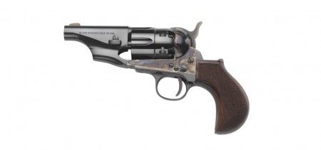 The new 1860 Army Snub Nose takes a smaller size twist on the traditional full size 1860 Army. It is in .44 caliber, has a fluted cylinder, and a 3″ barrel without a loading lever. The Snub Nose model also features very comfortable checkered flattop birdshead grips. A brass loading tool is included with gun. R&D Conversion Cylinder sold separately. Item Number: 317PIE Manufacturer: Pietta Barrel Length: 3 Inch Caliber: .44 Capacity: 6 Weight: 2.60 lbs Finish: Blue Finish with Case Hardened Frame Grip/Stock: Checkered Walnut Sights: Blade Front Overall Length: 9.3 Inches Action Version: Standard Edition