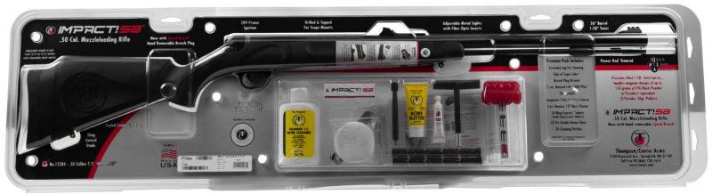 Impact SB Features The Impact SB is offered in both a Blued and Weather Shield corrosion-resistant finish. Also includes a 1″ removable buttstock spacer, allowing the user to adjust the length of pull to best suit clothing choice and weather conditions in the field. A new, hand-removable triple lead thread breech plug and Power Rod aluminum ramrod for easy loading. Impact SB Specifications Caliber:50 Cal Model:Impact Series:SB Stock Finish:Black Action:Single Shot Sights:Adjustable Fiber Optic Front & Rear Length of Pull:13″-14″ OAL:40″ Receiver Finish:Blued Stock Material:Synthetic Twist:1:28″ Weight:6.95 lbs Barrel Finish:Blued Barrel Length:26″