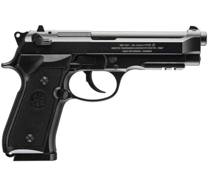 The sleek curves and solid build of the M92 A1 .117 air pistol work well with the full-metal construction and authentic feel of this gun. Not only does this gun provide realistic blowback action, but it also has a full auto mode that makes airgunning even more fun than before. The 26-shot magazine serves as the CO2 location to power the airgun. Features: – Full-Auto/ Semi-Auto – Full metal – Realistic recoil action – 26-shot BB pistol – CO2 housed in the magazine – Drop-free CO2/BB magazine – Fixed front and rear sights