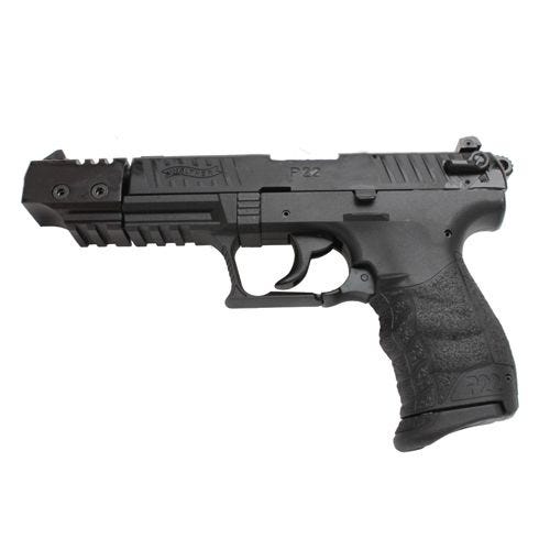 Walther P22-CA Semi-automatic Double Action Only Compact 22LR 5″ Polymer Blue 10Rd 1 Mag Fixed Barrel Adjustable Sights 5120334 P22 SERIES – CA APPROVED – NON-THREADED BARREL •SA/DA •Compact, modern, high-tech design •Interchangeable frame backstraps •Lightweight polymer frame •Ambidextrous controls •Integrated trigger lock •Loaded chamber indicator •Magazine disconnect, hammer safety & firing pin safety •Interchangeable barrel (sold separately) converts P22 from standard to target version •NOTE: Target model equipped w/barrel weight/non-functional compensator Black Target .22LR 3.42″ brl 10 rd cap.